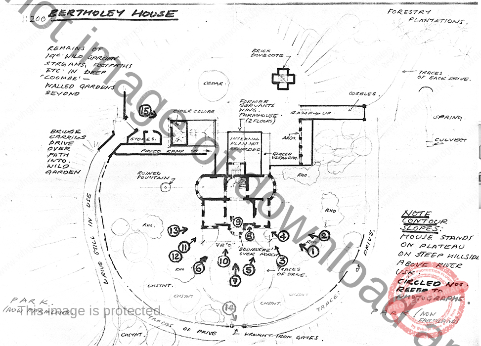 A Tudor house, the home of a branch of the Kemeys family, once stood on this site, on high ground overlooking a meander in the River Usk. In the 1830s a new mansion was built in the Neoclassical style and the existing house, which had incorporated part of the original Tudor building, was repurposed as its service wing